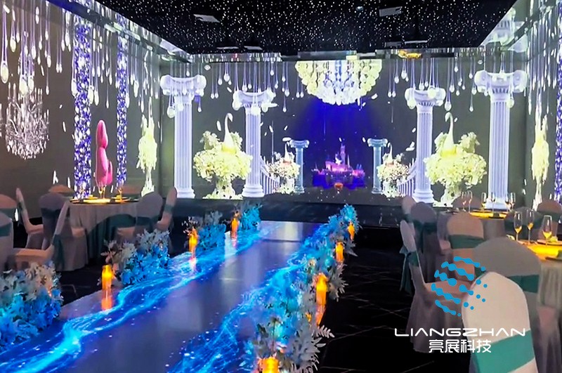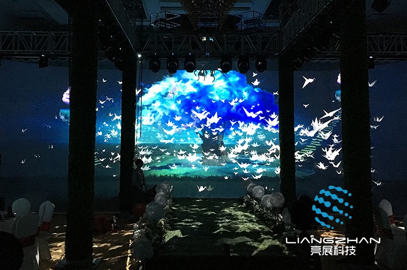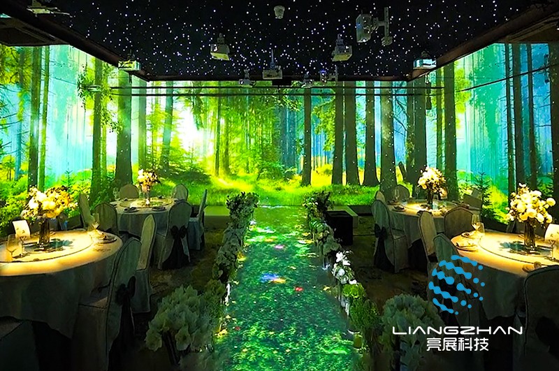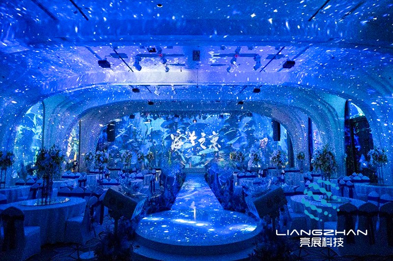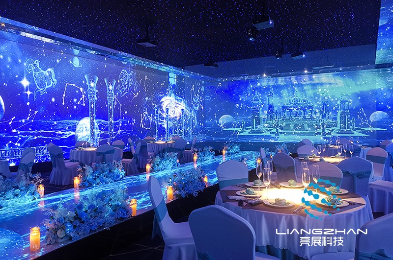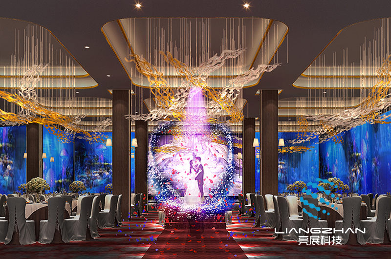 光影技術是一種具有時空性質的運動著的光色造型藝術,與宴會廳融合結合不同的主題風格,無論是婚宴、生日宴,還是升學宴,都可以打造出美輪美奐的震撼場景。