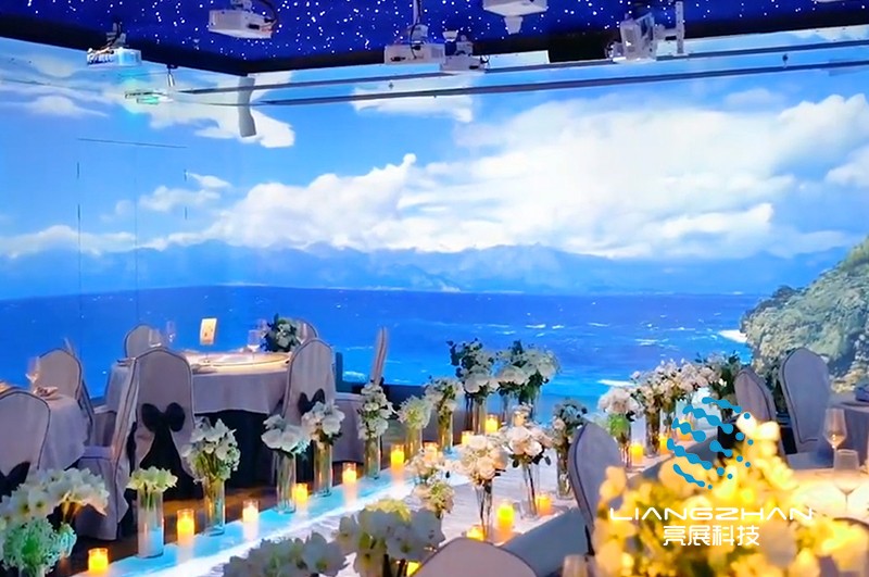 全息宴會廳可大大節省裝修成本,一次投入終生使用。該光影宴會廳對基礎裝修幾乎沒有要求,地毯、白墻、頂部噴黑即可實現。裝修費用大小相當于普通餐廳,對于現有宴會廳進行改造升級也是同理,只需要較少成本的投入即可。