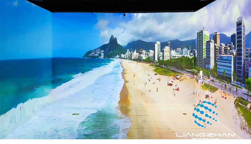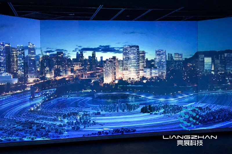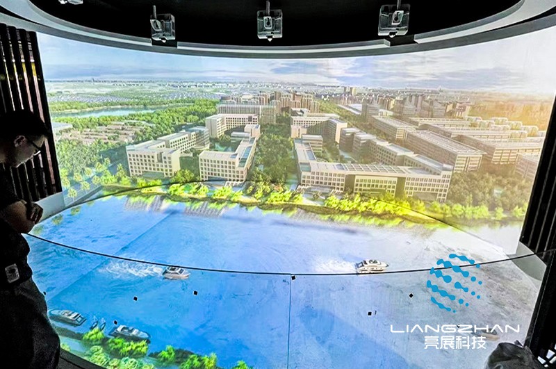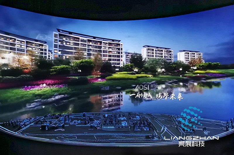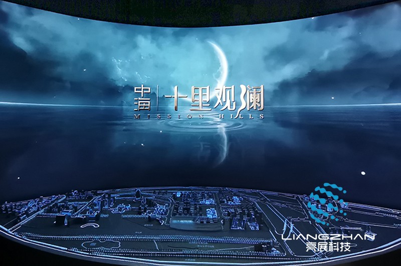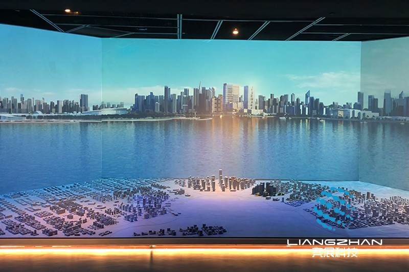 沉浸式數字沙盤是通過多通道融合技術將多臺投影機的畫面無縫拼接融為一個畫面,通過空間結構和畫面的融合達到沉浸式效果,使得觀眾置身于影片之中,達到身臨其境的沉浸感。