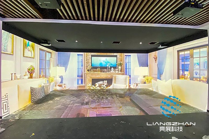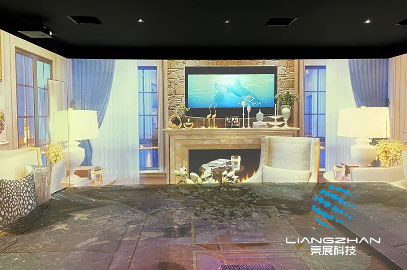 該系統可提供一個房間大小的四面(或六面)立方體投影顯示空間,供多人參與,所有參與者均沉浸在一個被立體投影畫面包圍的高級虛擬仿真環境中,借助相應虛擬現實交互設備(如數據手套、力反饋裝置、位置跟蹤器等),從而獲得一種身臨其境的高分辨率三維立體視聽影像和自由交互的感受。由于投影面幾能夠覆蓋用戶的所有視野,所以CAVE系統能提供給使用者震撼性的身臨其境的沉浸式體驗。